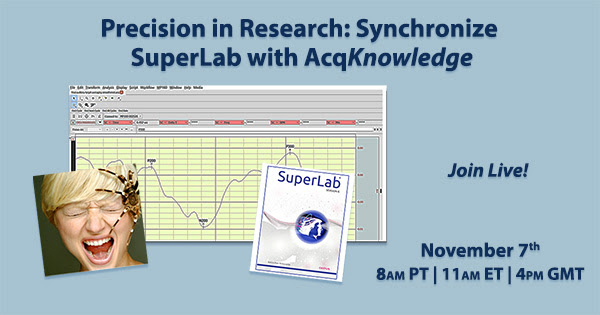 Software-ul AcqKnowledge cuplat cu SuperLab ofera o platforma puternica pentru a studia raspunsul la stimuli. In aceast training, expertii vor demonstra pasii implicati in proiectarea unui scenariu de prezentare a stimulilor utilizand SuperLab in diferite modalitati. Demonstratia va include capturarea markerilor de eveniment ca semnaturi TTL digitale si integrarea cu AcqKnowledge. De asemenea, va fi demonstrata sincronizarea AcqKnowledge si SuperLab in timpul testelor Stroop si Choice Reaction Time. Expertii vor parcurge proiectarea unui model experimental, configurarea software-ului si hardware-ului, derularea unui experiment si analizarea datelor.
